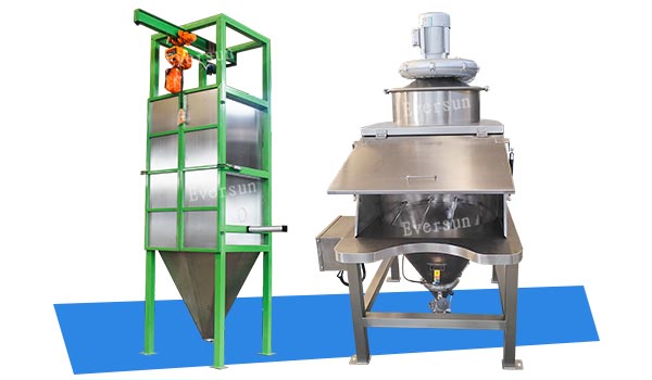 Que ce soit un sac de 25kg ou un sac d'une tonne, il n'y a aucun moyen d'éviter le problème du contrôle de la poussière. Pour différentes exigences d'alimentation en matériaux, EVERSUN propose des solutions personnalisées de systèmes de déballage et d'alimentation. Basé sur les caractéristiques des matériaux et les exigences du processus.